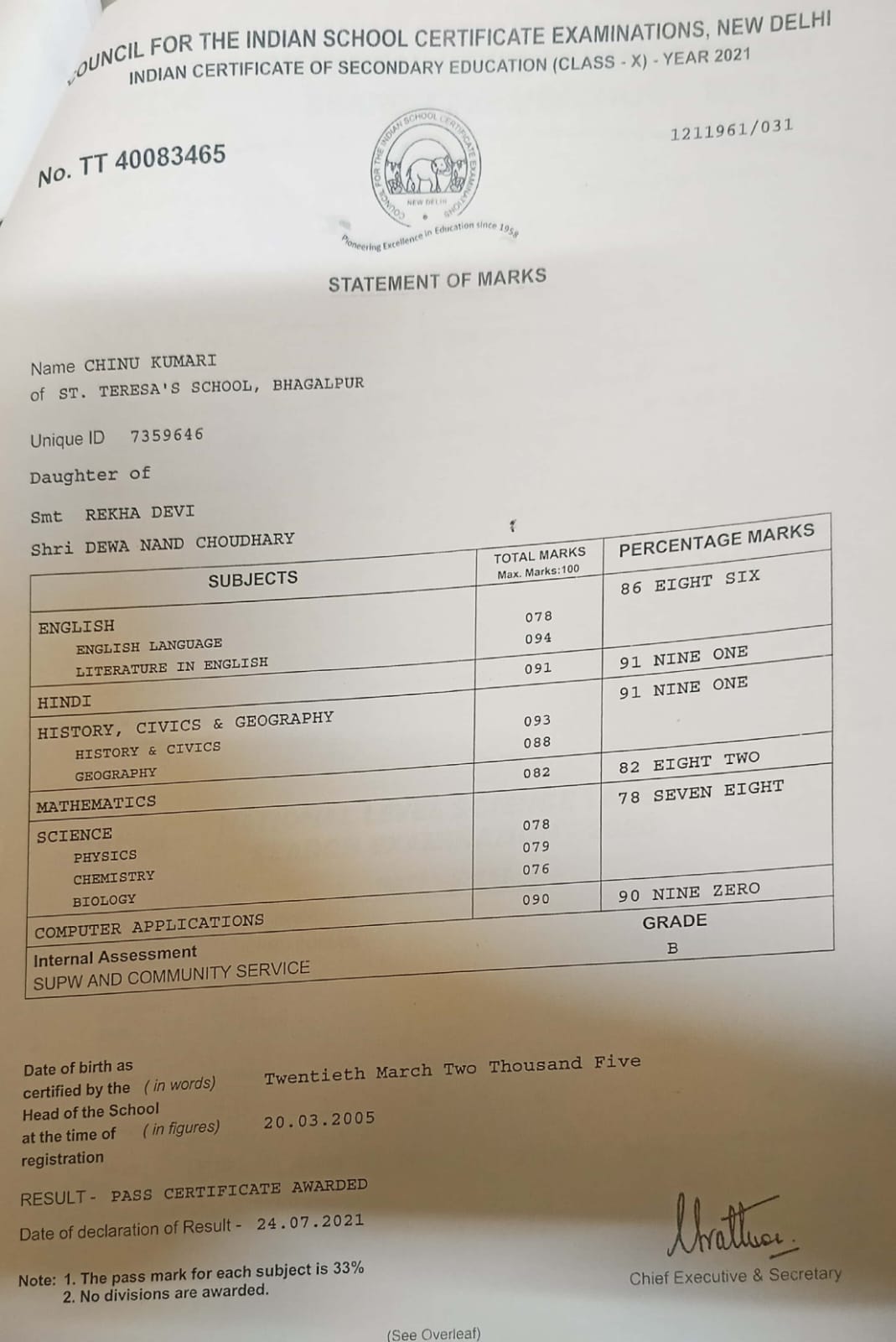 | Exam | Full Marks | Pass Marks | Marks Obtained |