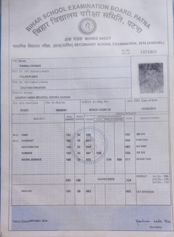 | Exam | Full Marks | Pass Marks | Marks Obtained |