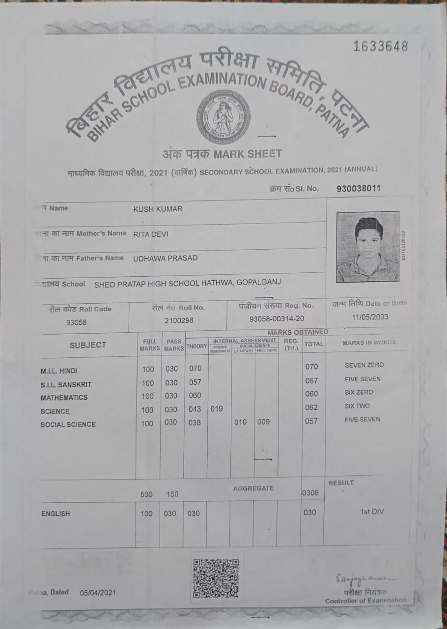 | Exam | Full Marks | Pass Marks | Marks Obtained |