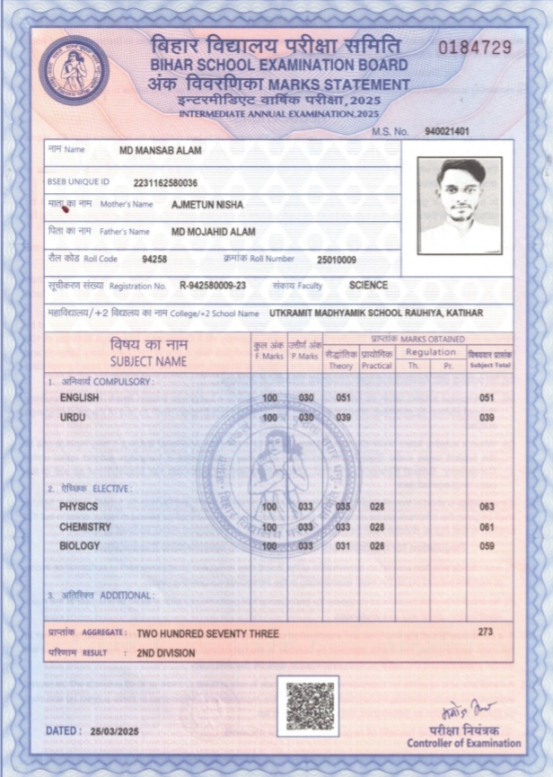 | Exam | Full Marks | Pass Marks | Marks Obtained |