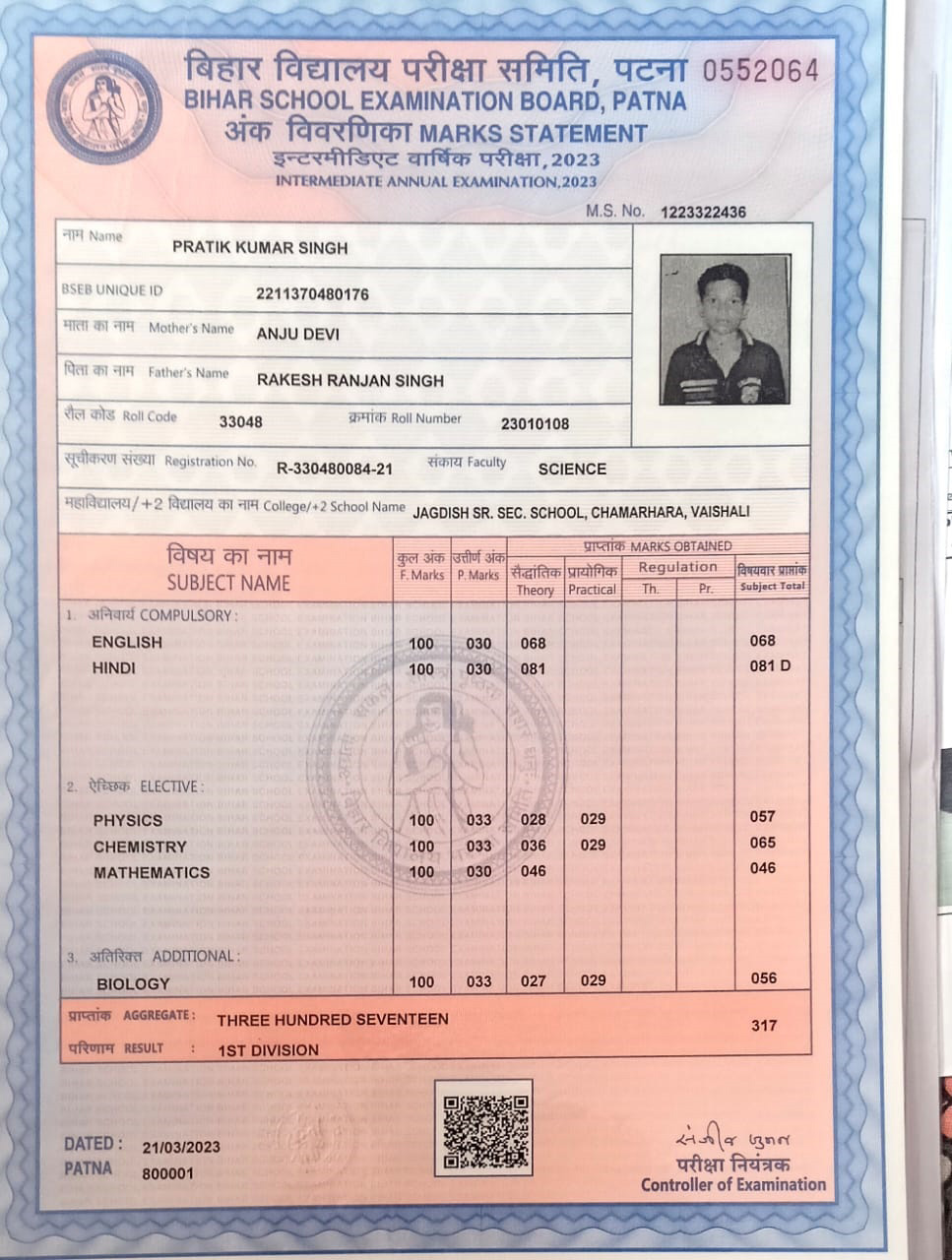 | Exam | Full Marks | Pass Marks | Marks Obtained |