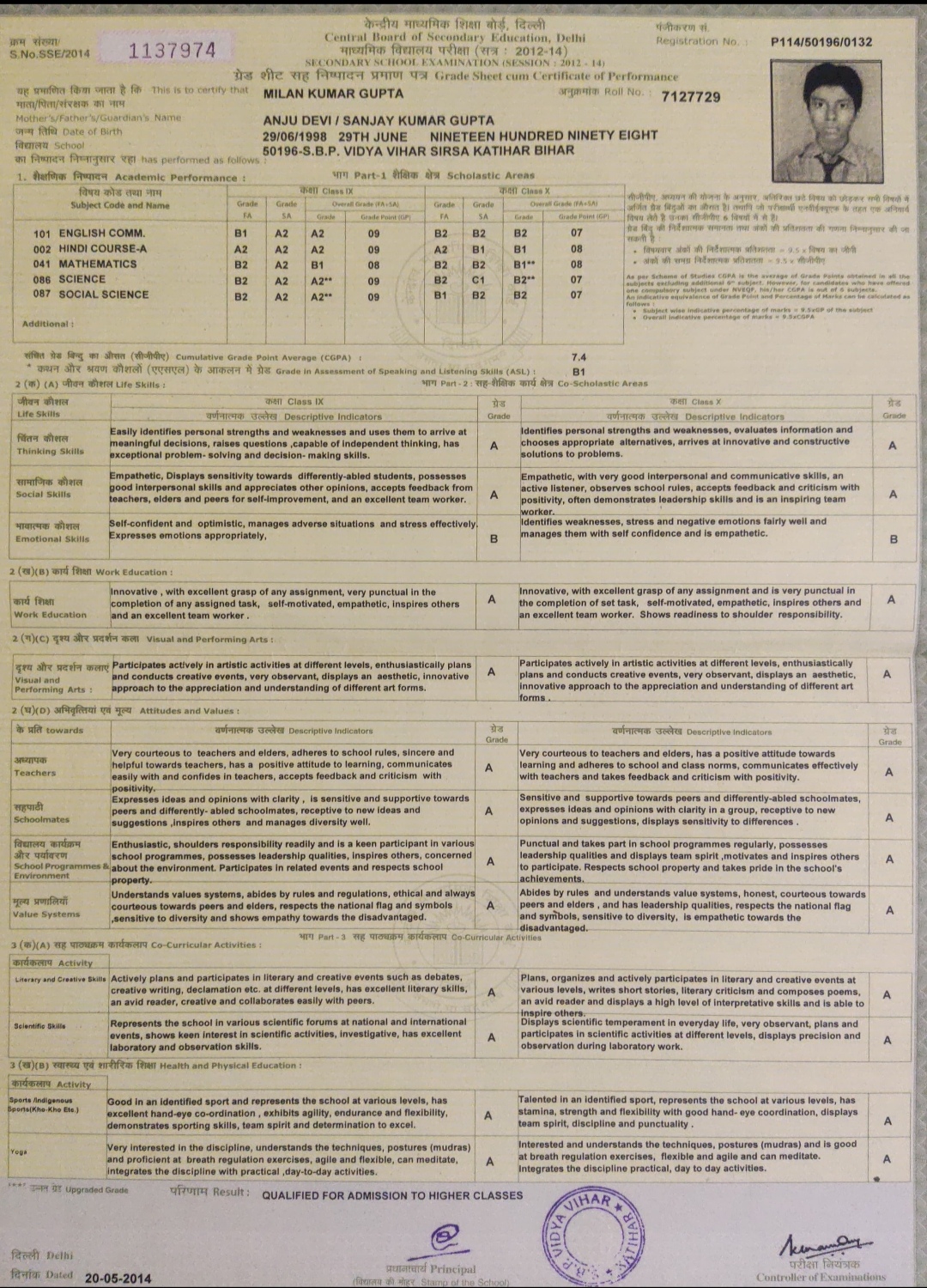 | Exam | Full Marks | Pass Marks | Marks Obtained |