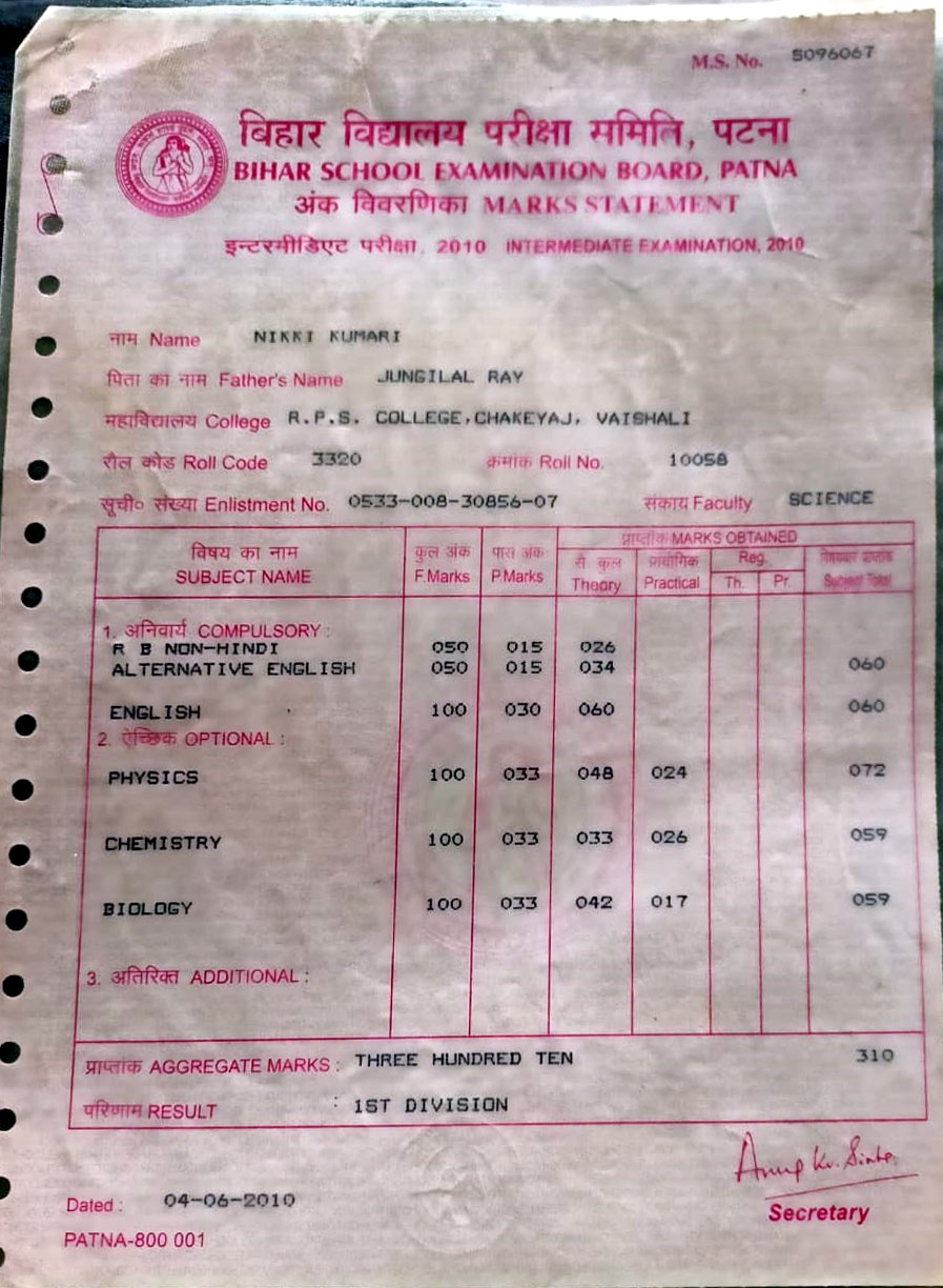 | Exam | Full Marks | Pass Marks | Marks Obtained |