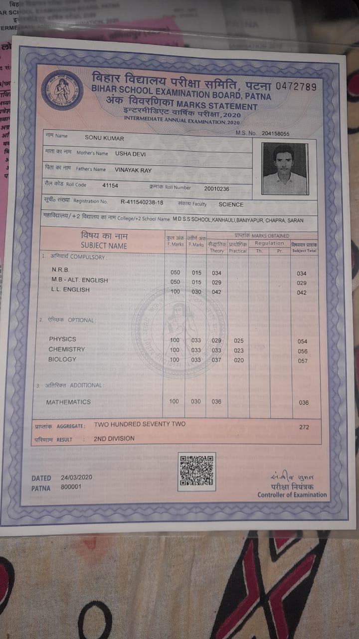 | Exam | Full Marks | Pass Marks | Marks Obtained |
