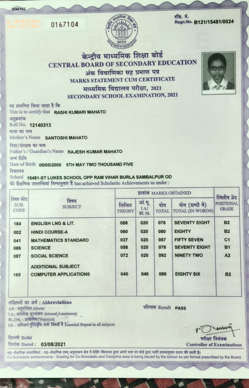 | Exam | Full Marks | Pass Marks | Marks Obtained |