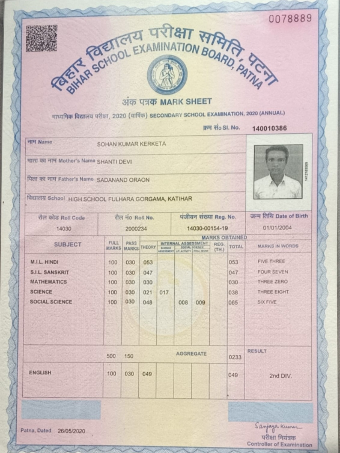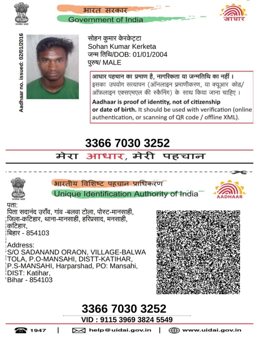 | : | Sadanand Oraon | |