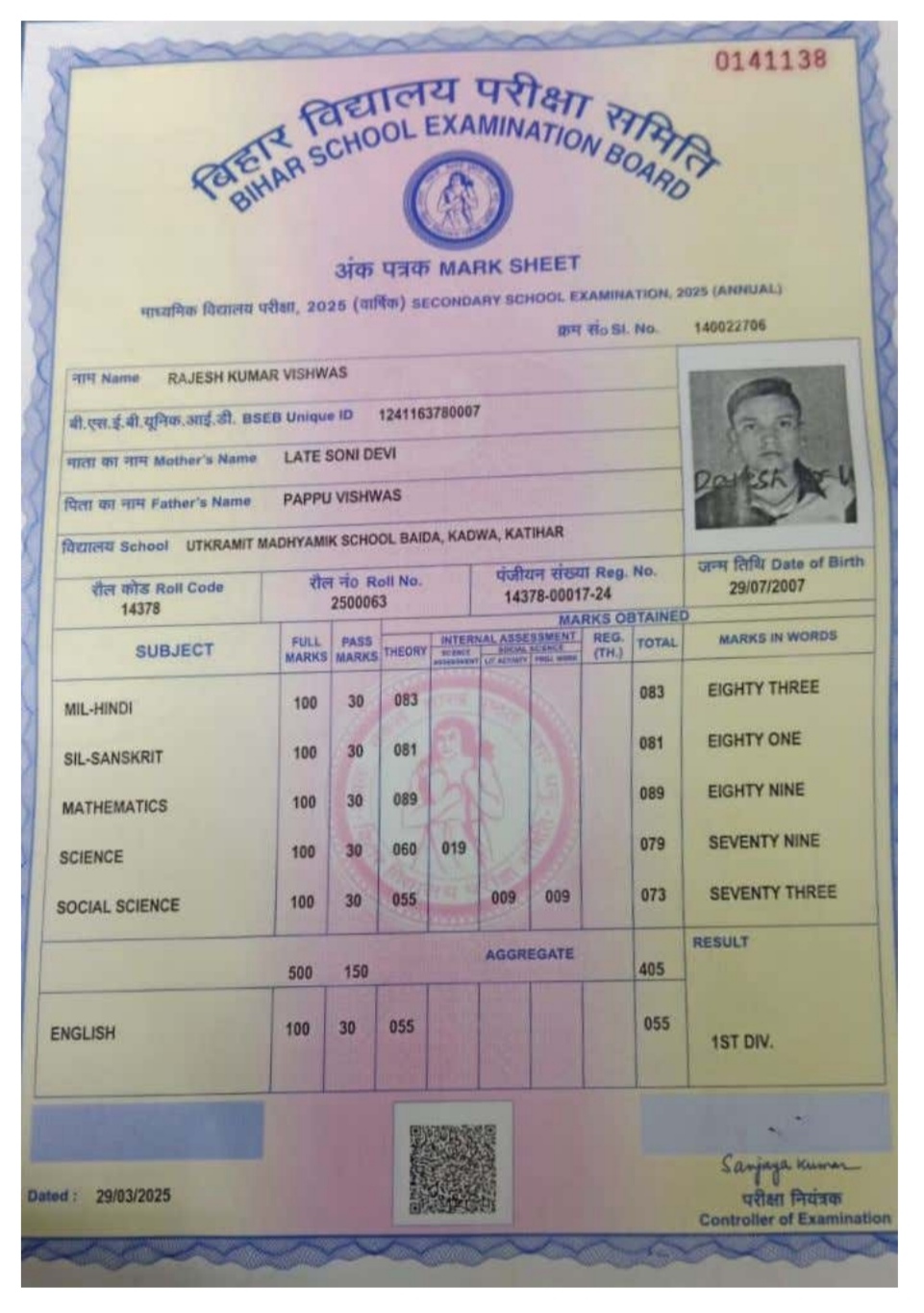 | Exam | Full Marks | Pass Marks | Marks Obtained |