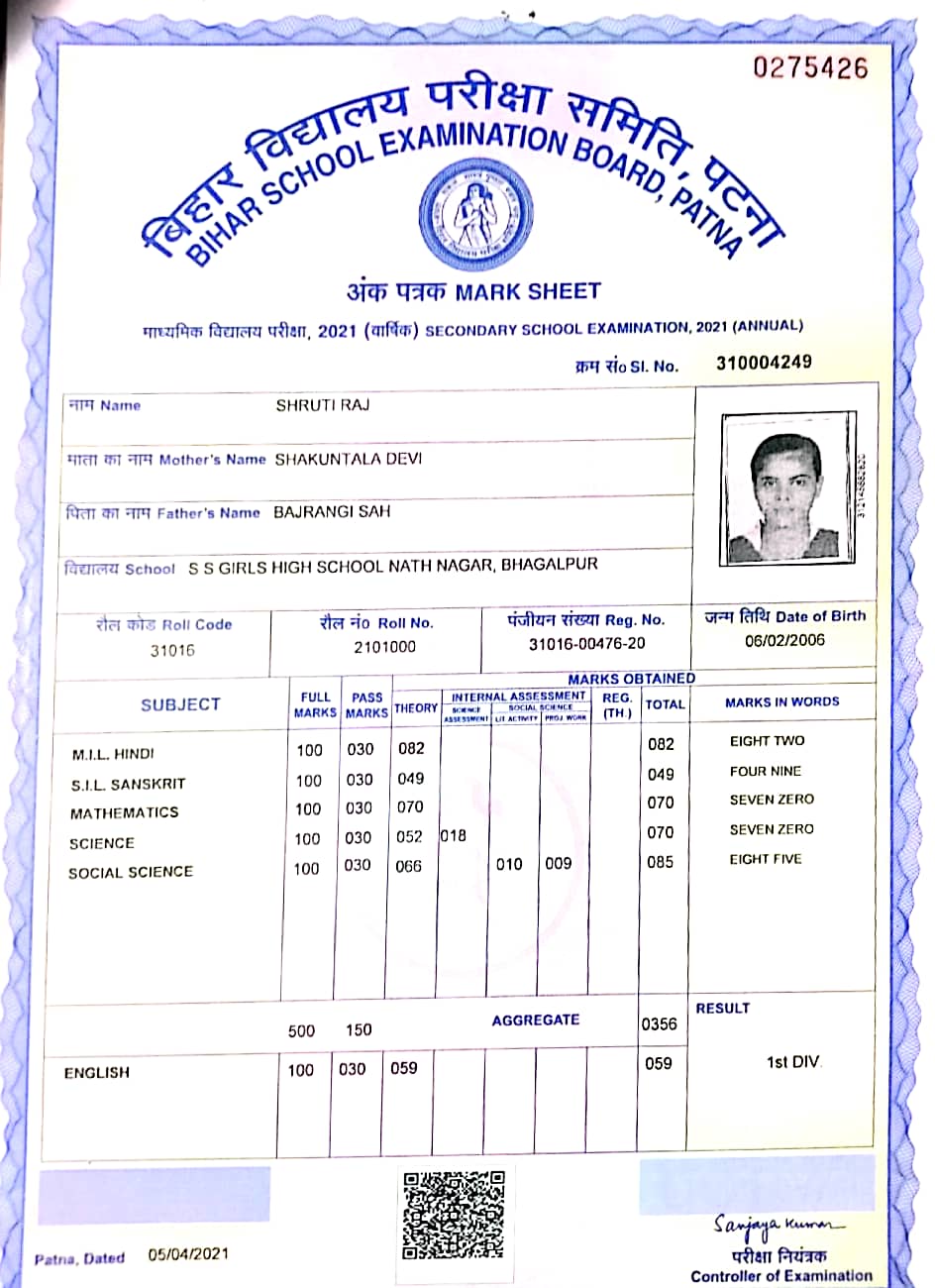 | Exam | Full Marks | Pass Marks | Marks Obtained |
