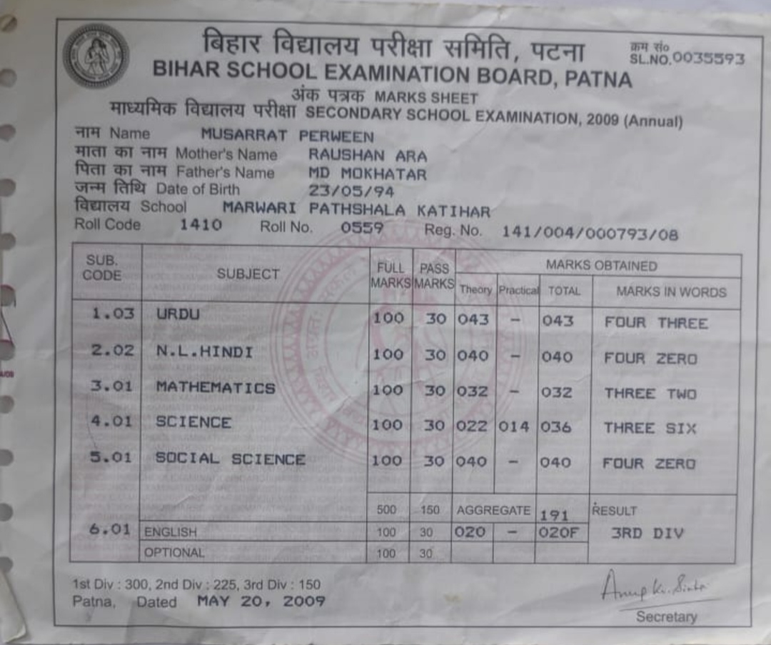 | Exam | Full Marks | Pass Marks | Marks Obtained |