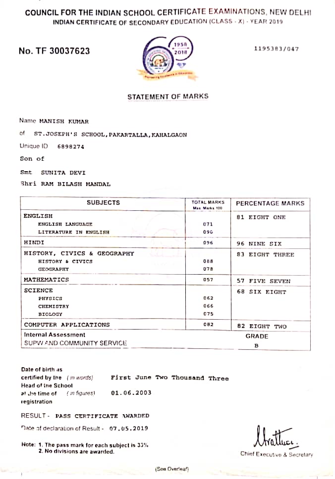 | Exam | Full Marks | Pass Marks | Marks Obtained |