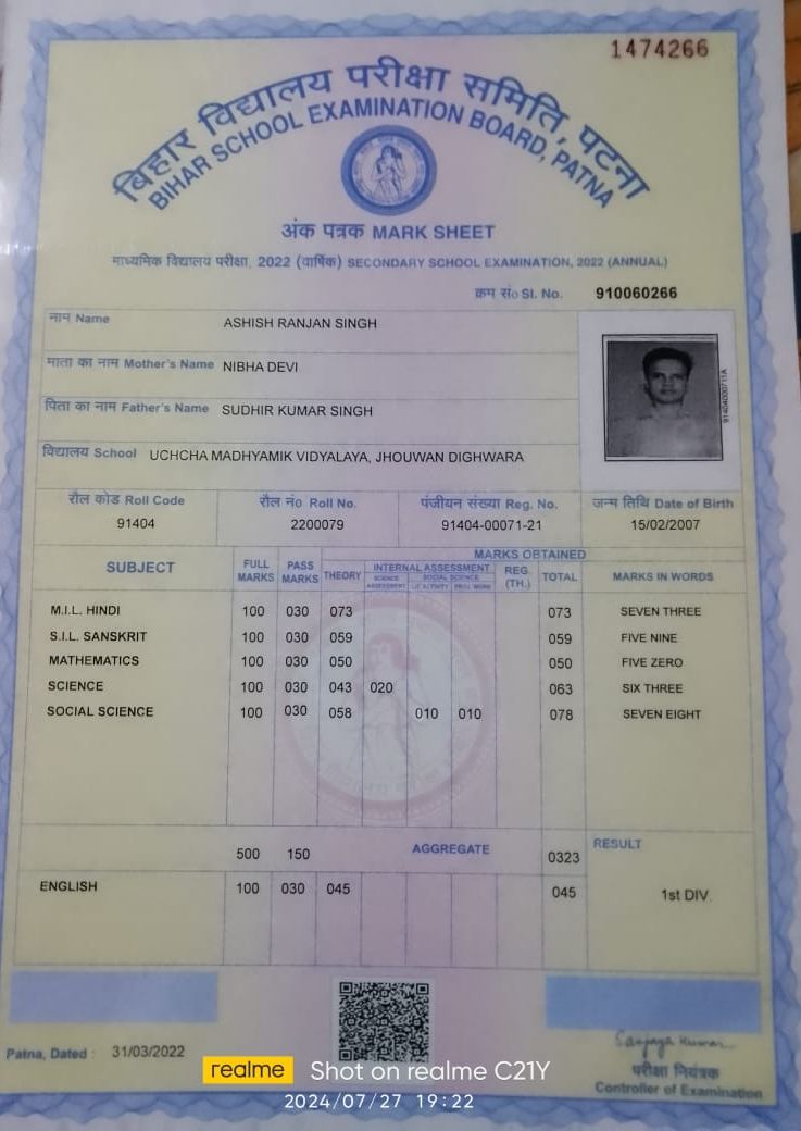 | Exam | Full Marks | Pass Marks | Marks Obtained |