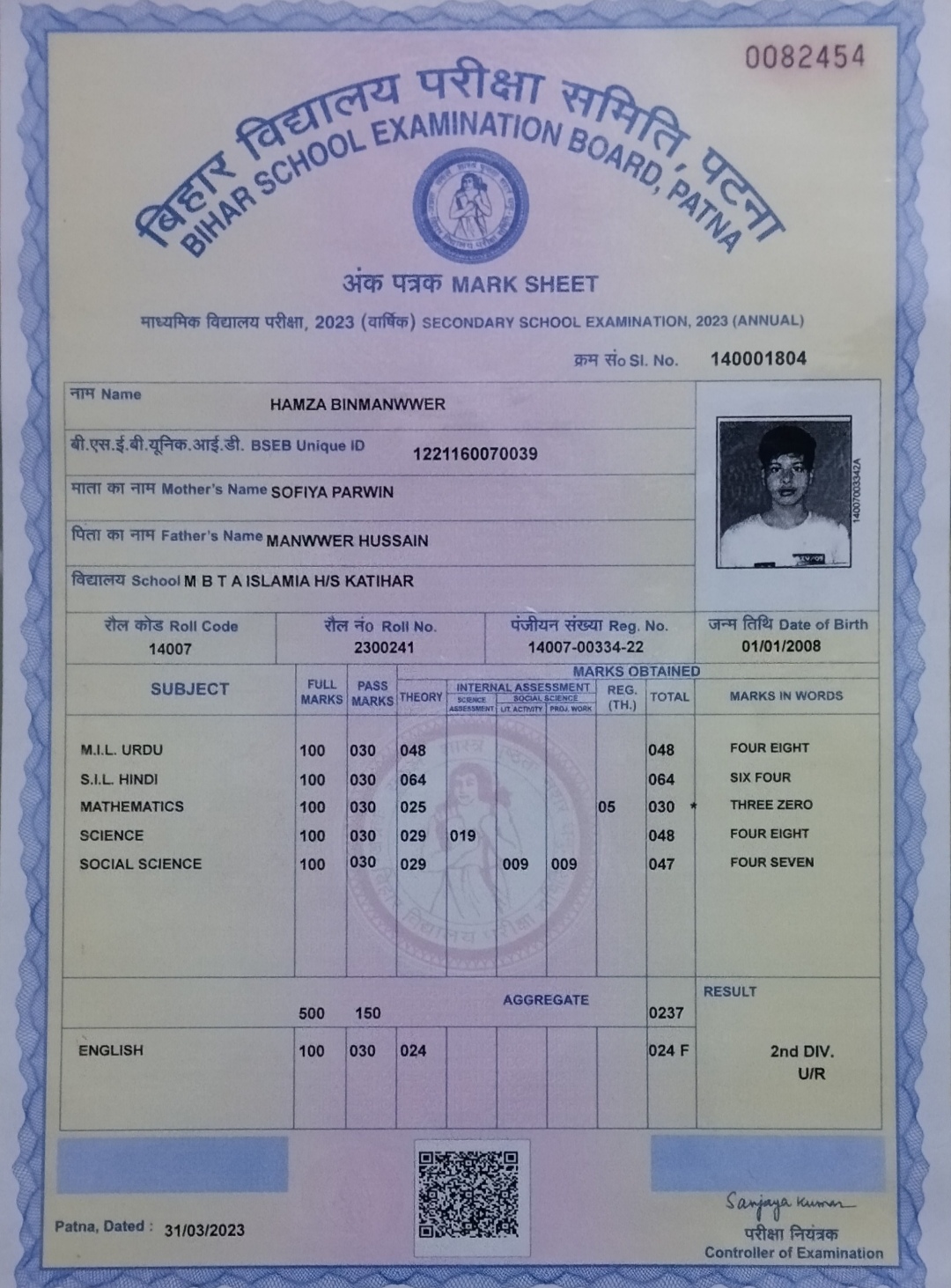 | Exam | Full Marks | Pass Marks | Marks Obtained |