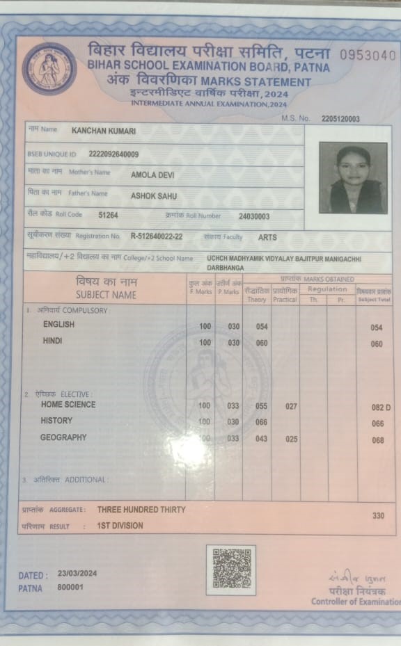 | Exam | Full Marks | Pass Marks | Marks Obtained |