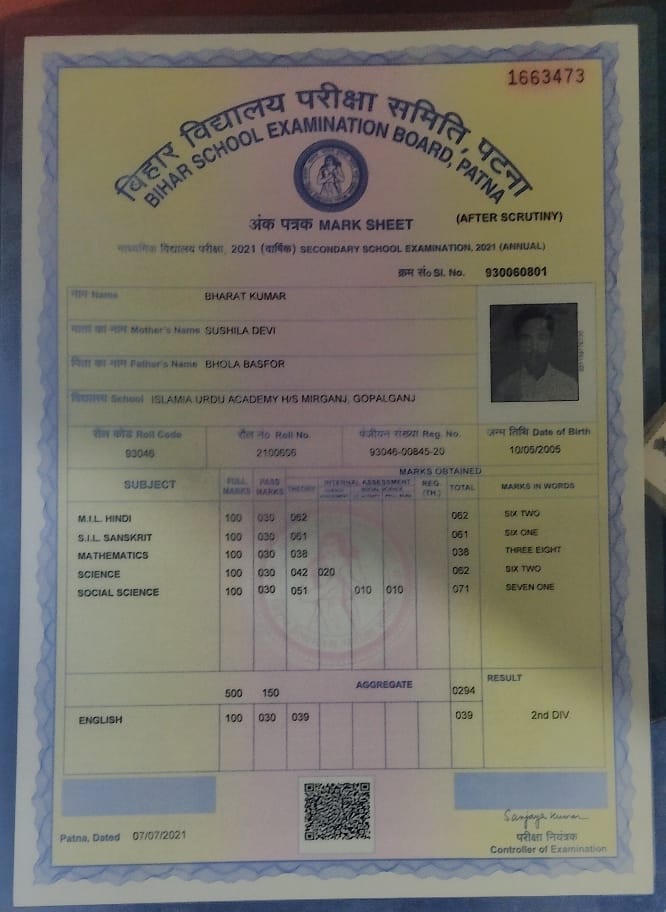 | Exam | Full Marks | Pass Marks | Marks Obtained |