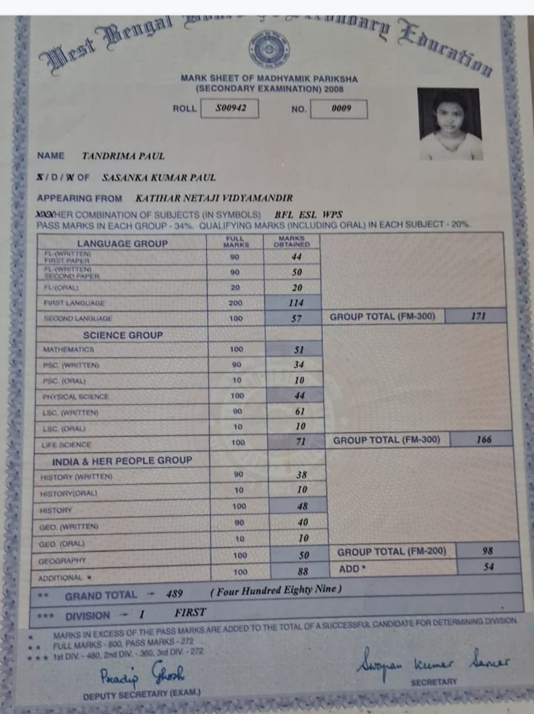 | Exam | Full Marks | Pass Marks | Marks Obtained |