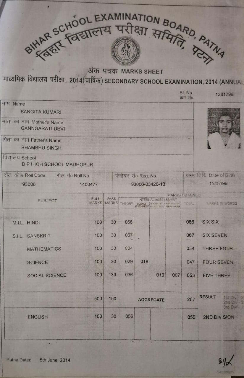 | Exam | Full Marks | Pass Marks | Marks Obtained |