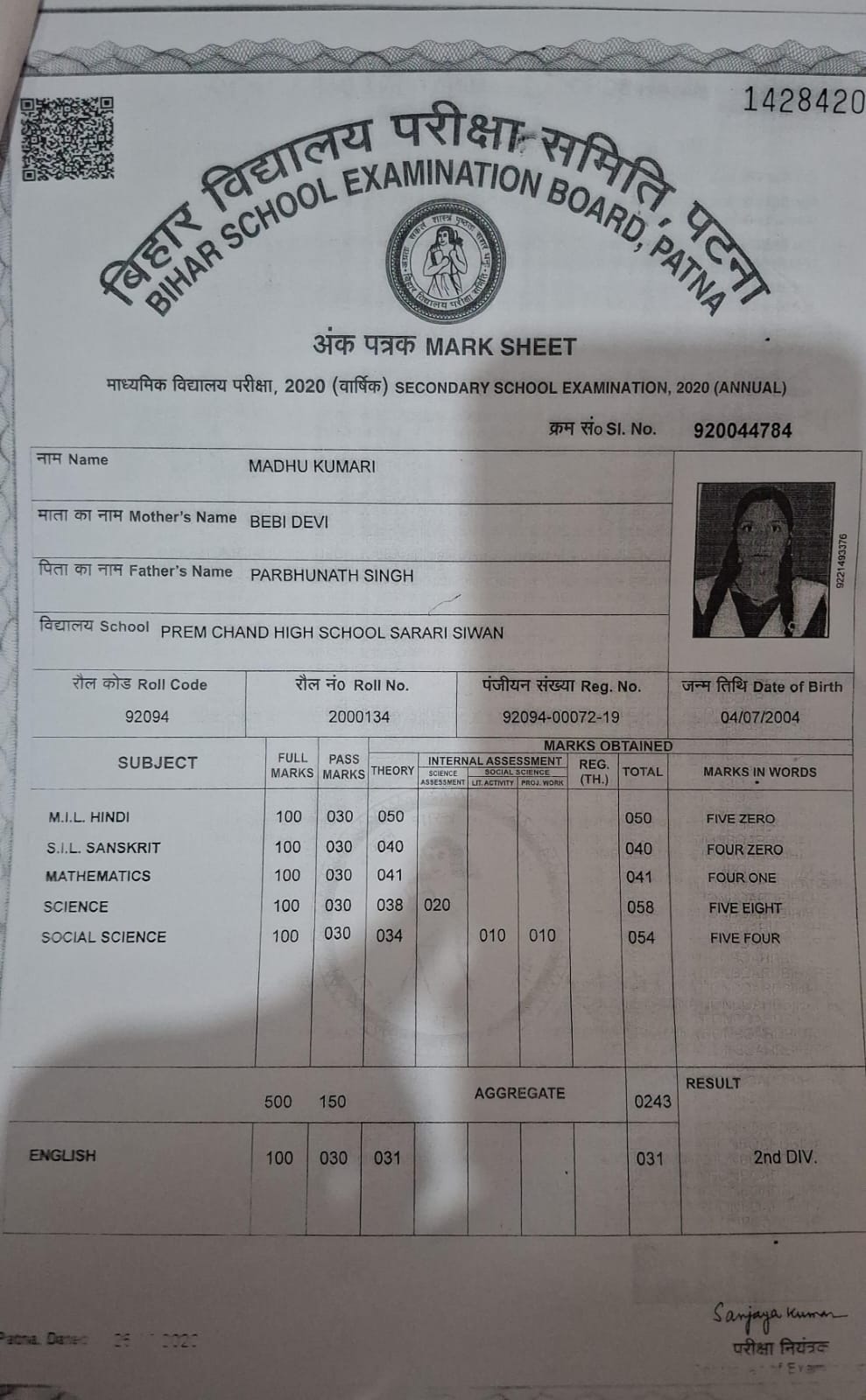 | Exam | Full Marks | Pass Marks | Marks Obtained |