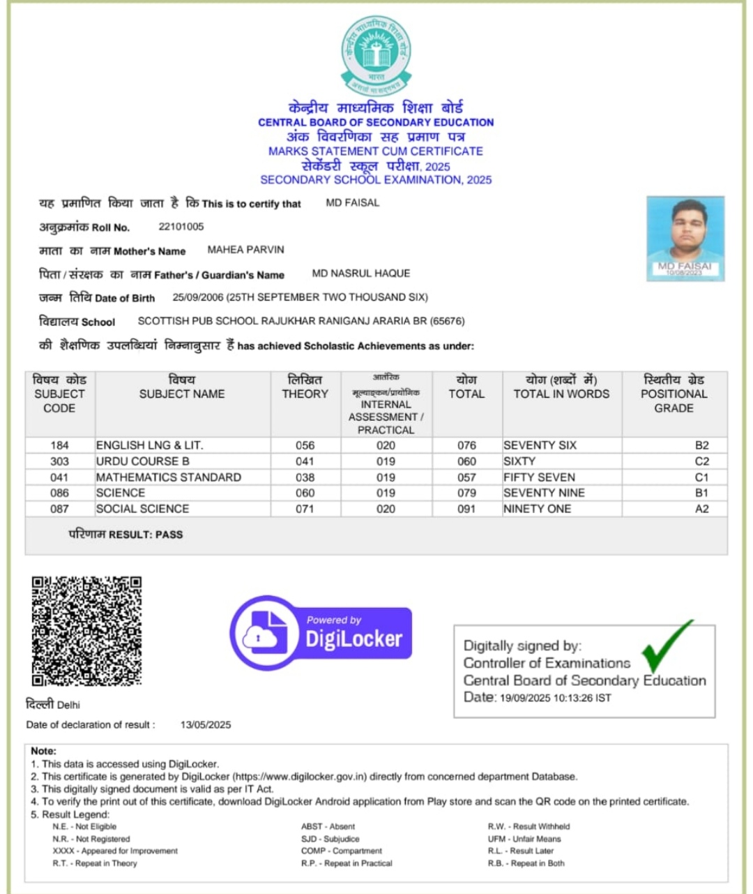 | Exam | Full Marks | Pass Marks | Marks Obtained |
