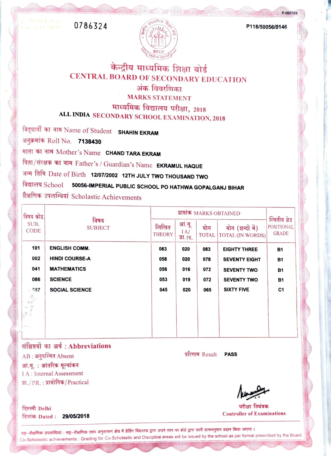 | Exam | Full Marks | Pass Marks | Marks Obtained |