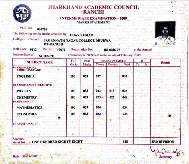 | Exam | Full Marks | Pass Marks | Marks Obtained |