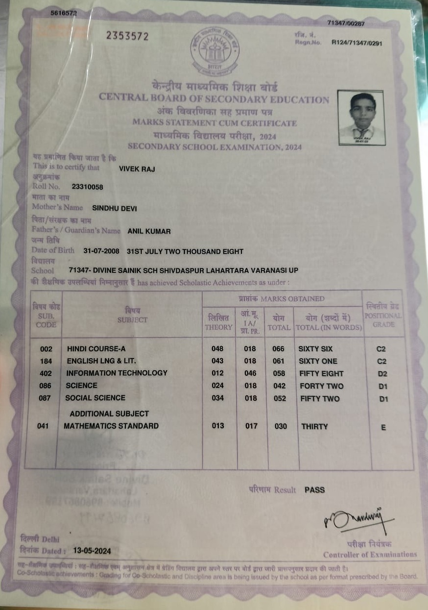 | Exam | Full Marks | Pass Marks | Marks Obtained |