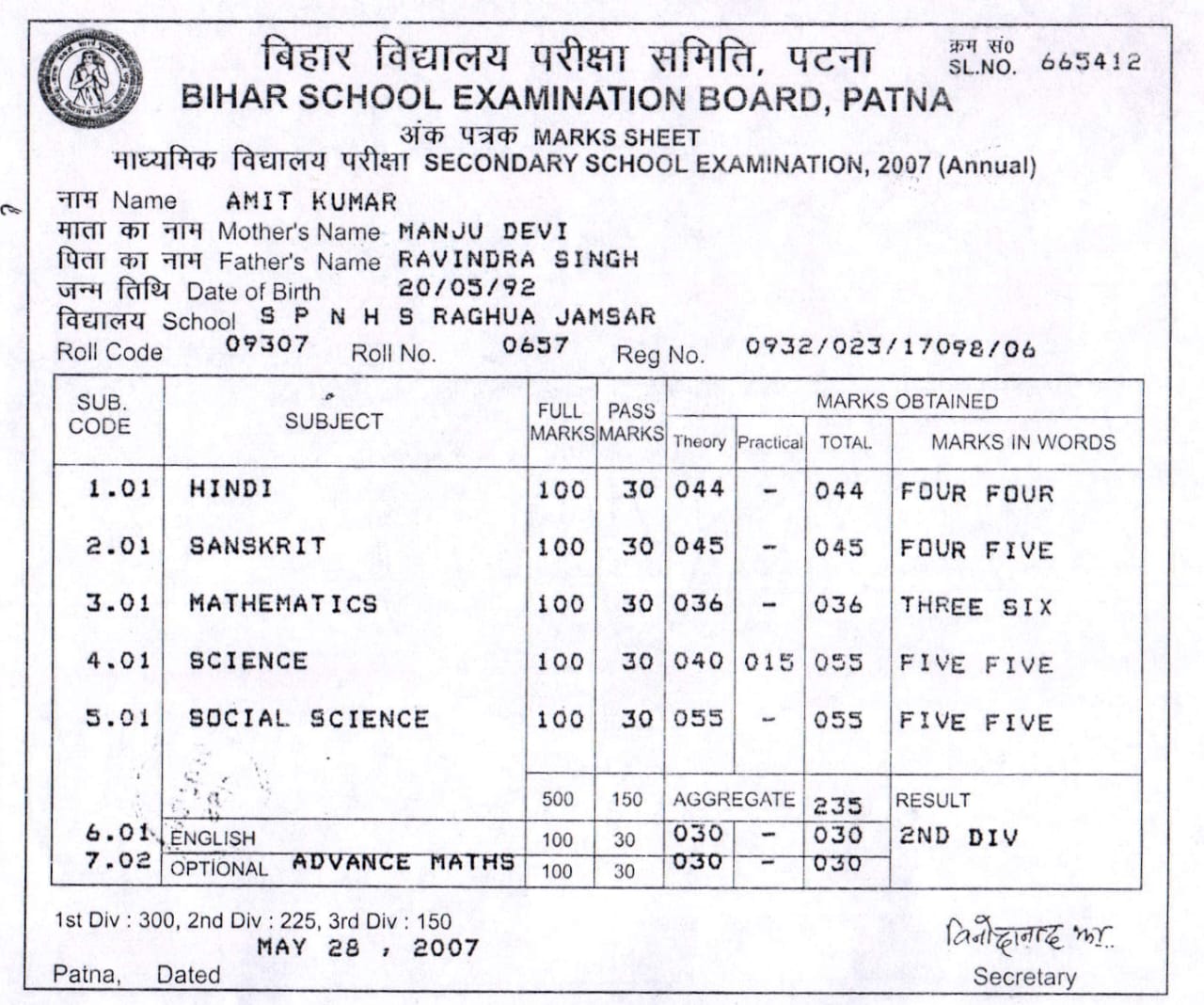 | : | Matric | |
