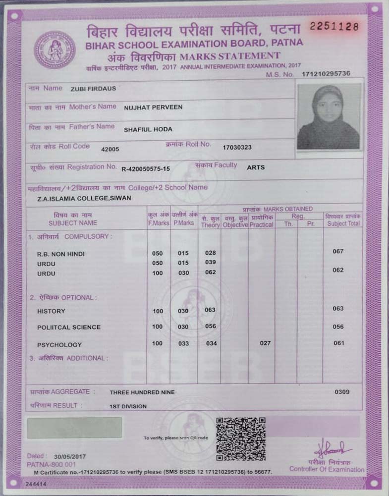| Exam | Full Marks | Pass Marks | Marks Obtained |