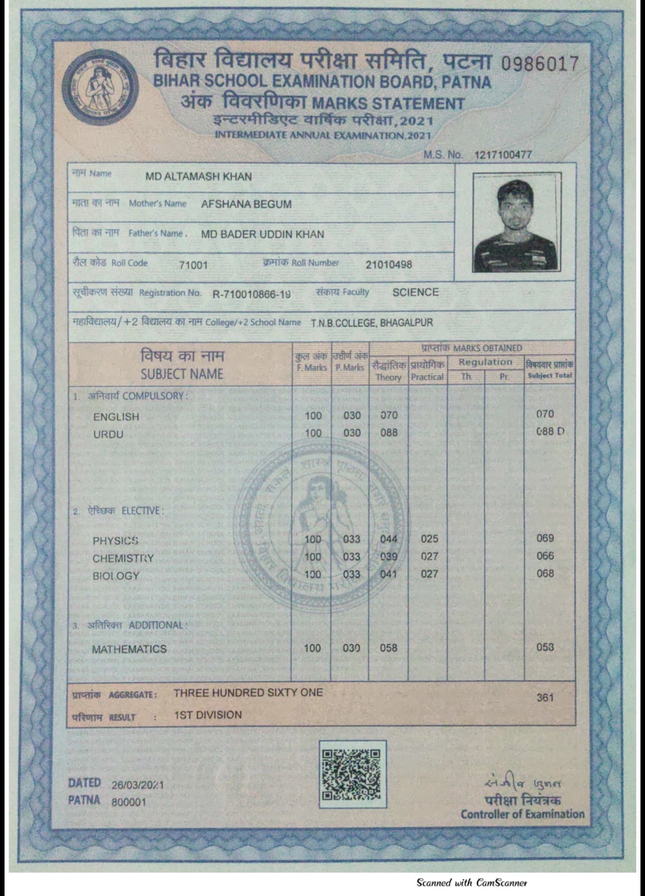| Exam | Full Marks | Pass Marks | Marks Obtained |