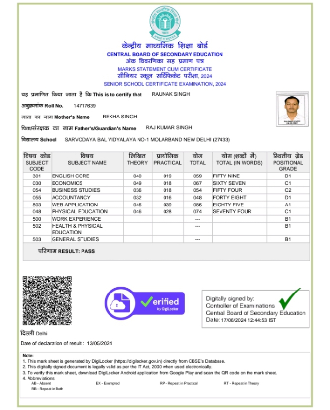 | Exam | Full Marks | Pass Marks | Marks Obtained |