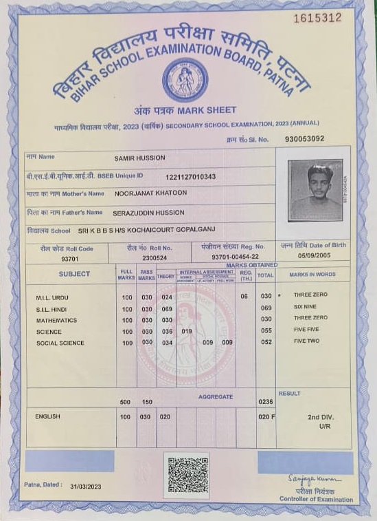 | Exam | Full Marks | Pass Marks | Marks Obtained |