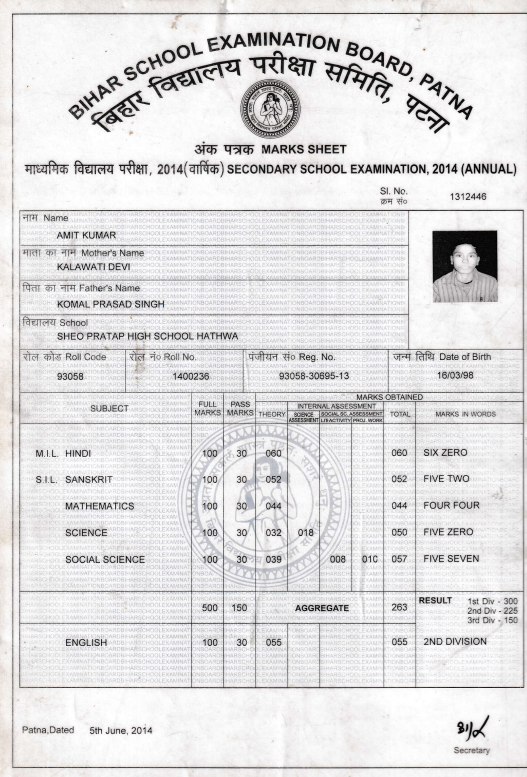 | Exam | Full Marks | Pass Marks | Marks Obtained |