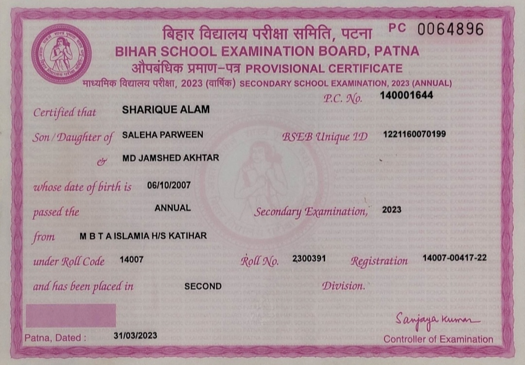 | Exam | Full Marks | Pass Marks | Marks Obtained |