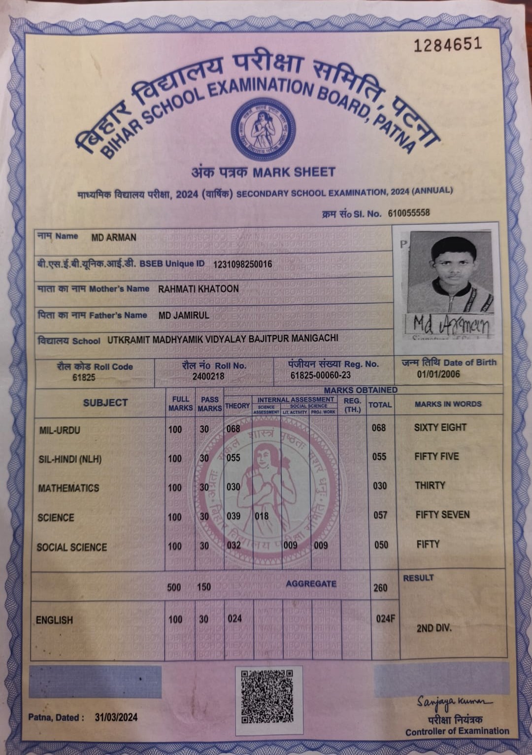 | Exam | Full Marks | Pass Marks | Marks Obtained |