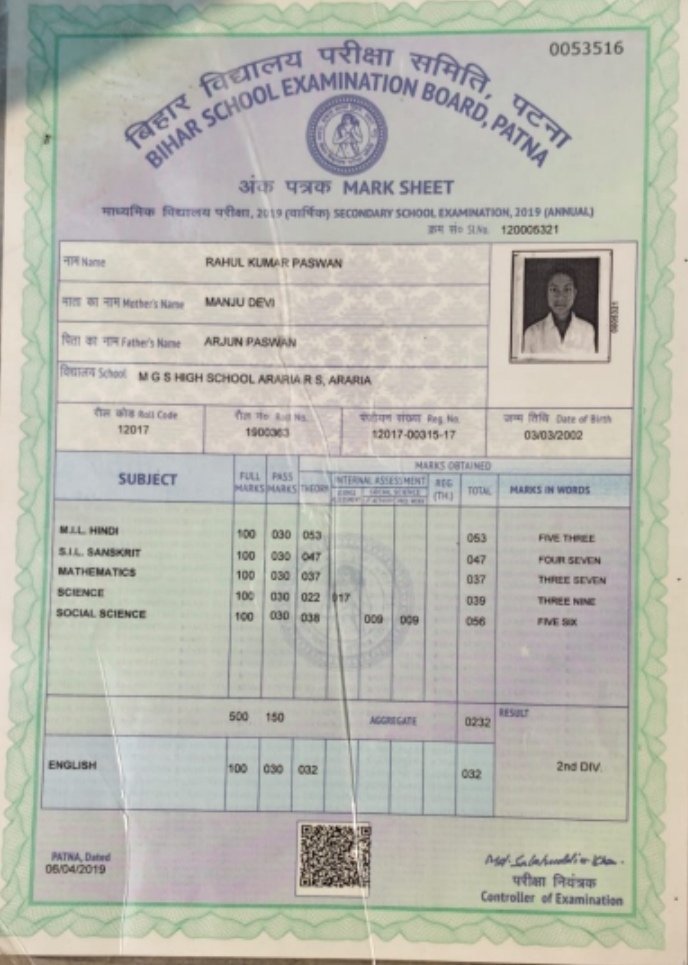 | Exam | Full Marks | Pass Marks | Marks Obtained |