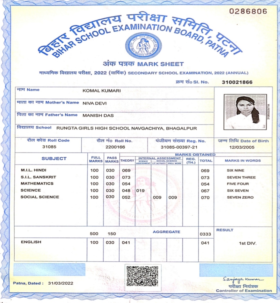 | Exam | Full Marks | Pass Marks | Marks Obtained |