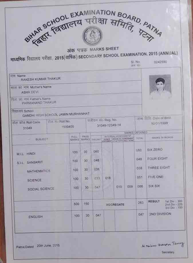 | Exam | Full Marks | Pass Marks | Marks Obtained |