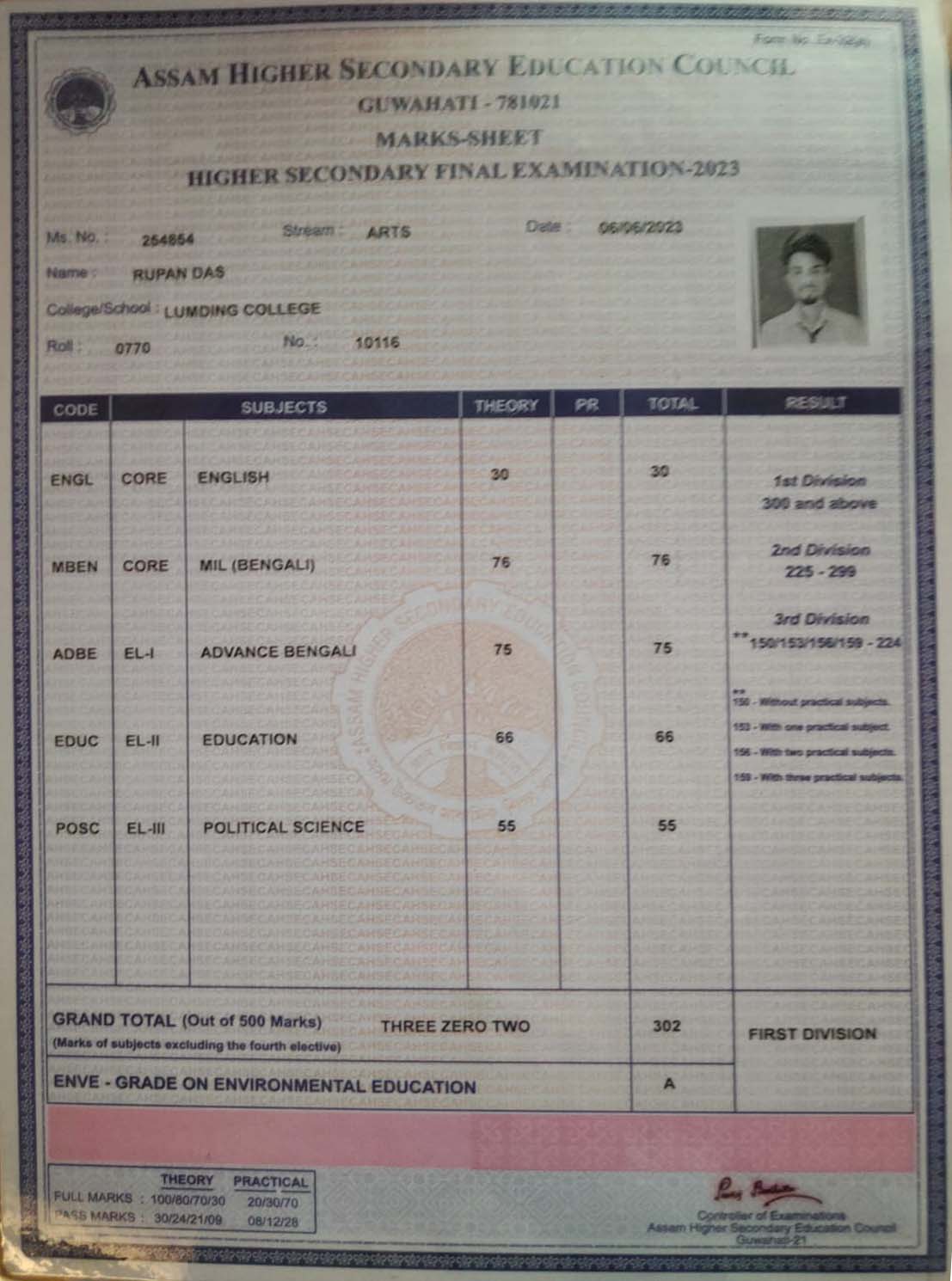 | Exam | Full Marks | Pass Marks | Marks Obtained |