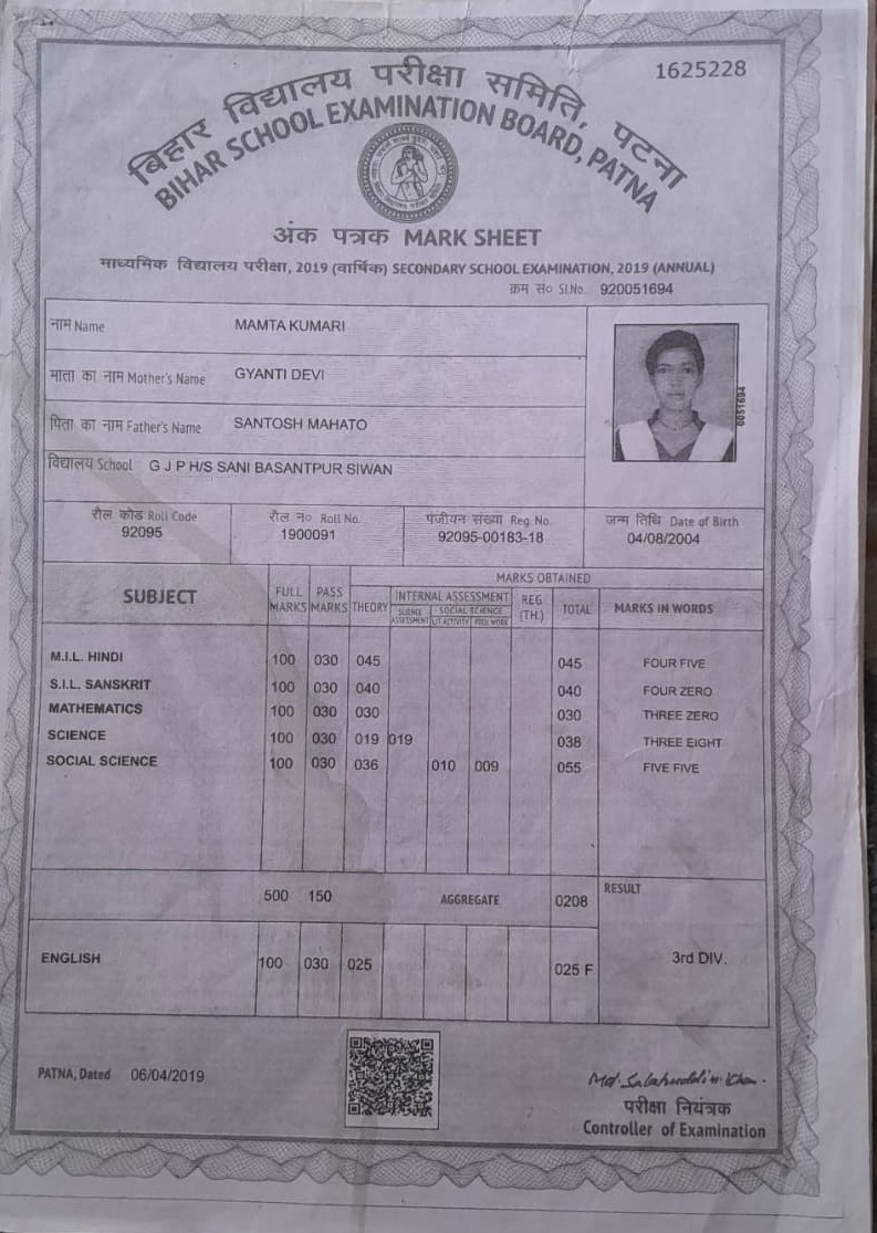 | Exam | Full Marks | Pass Marks | Marks Obtained |