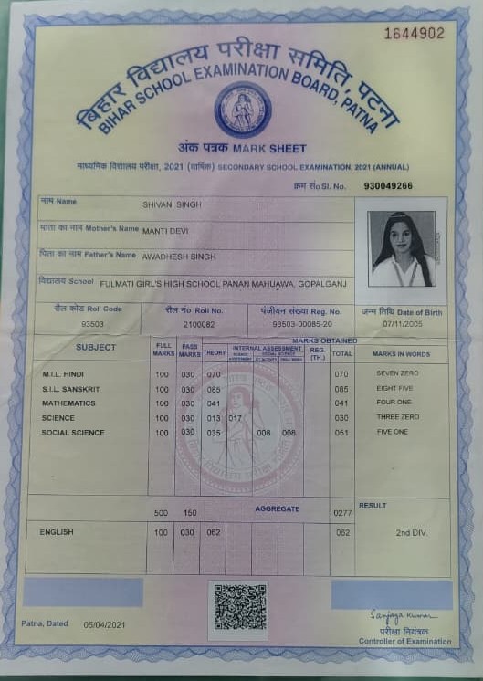| Exam | Full Marks | Pass Marks | Marks Obtained |