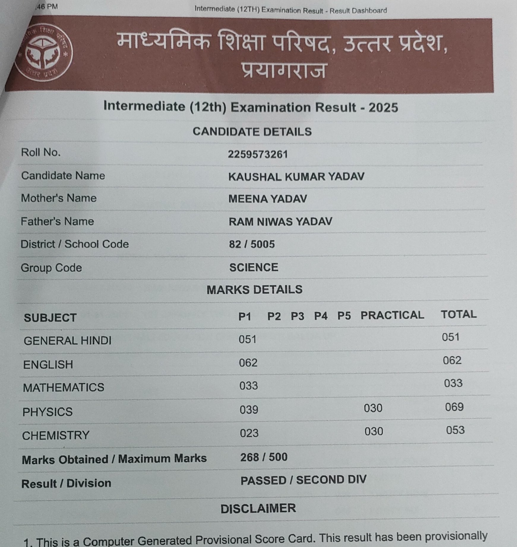 | Exam | Full Marks | Pass Marks | Marks Obtained |