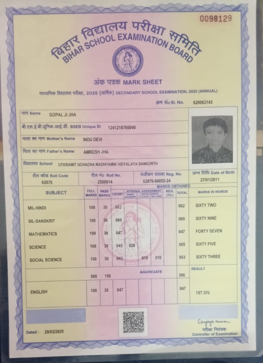 | Exam | Full Marks | Pass Marks | Marks Obtained |