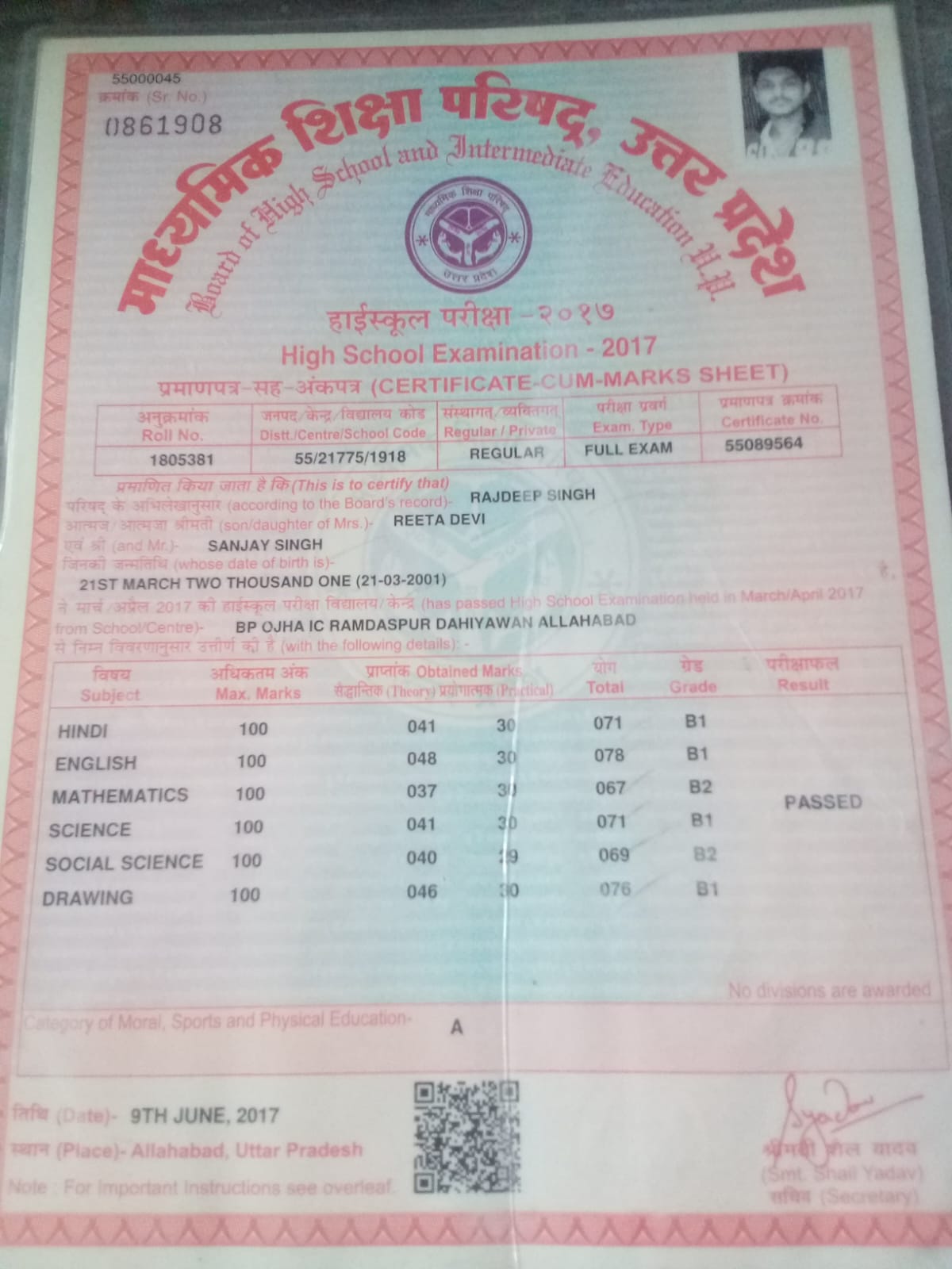 | Exam | Full Marks | Pass Marks | Marks Obtained |