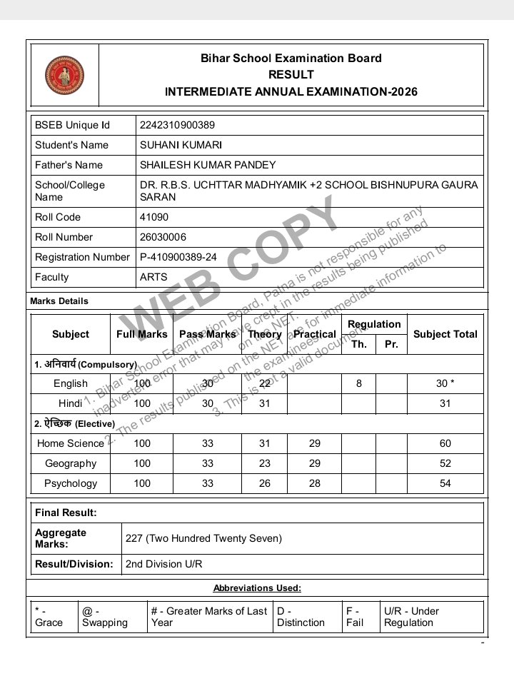 | Exam | Full Marks | Pass Marks | Marks Obtained |