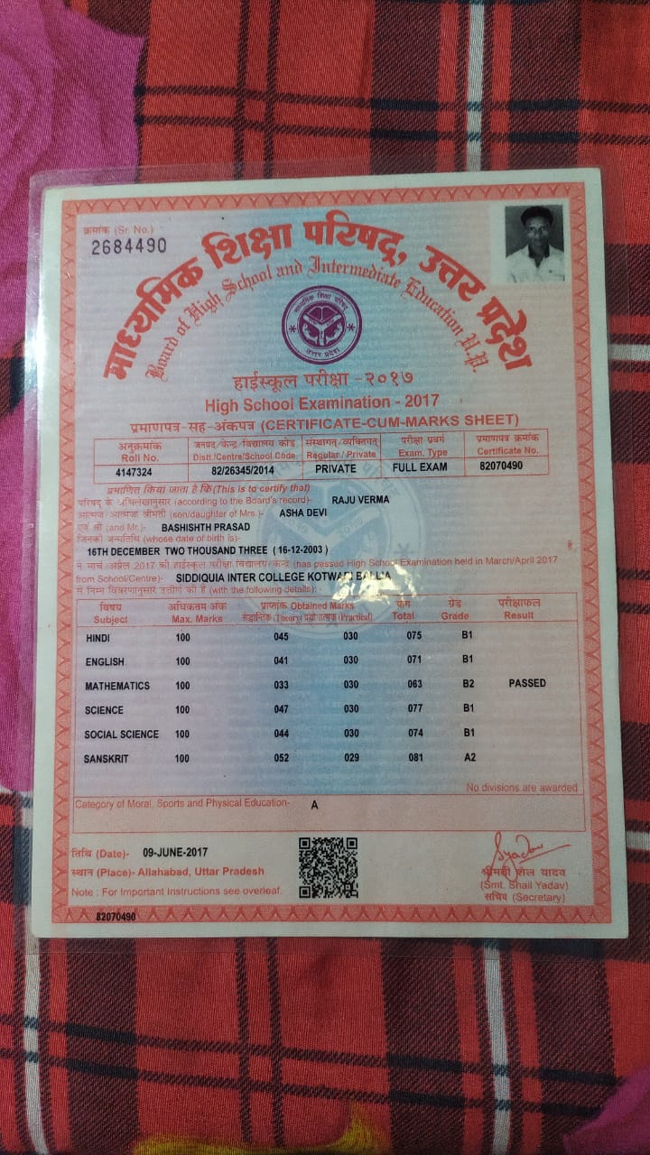 | Exam | Full Marks | Pass Marks | Marks Obtained |