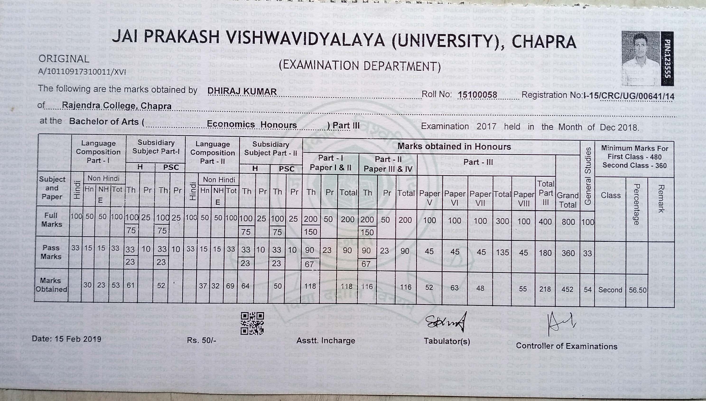 | Exam | Full Marks | Pass Marks | Marks Obtained |
