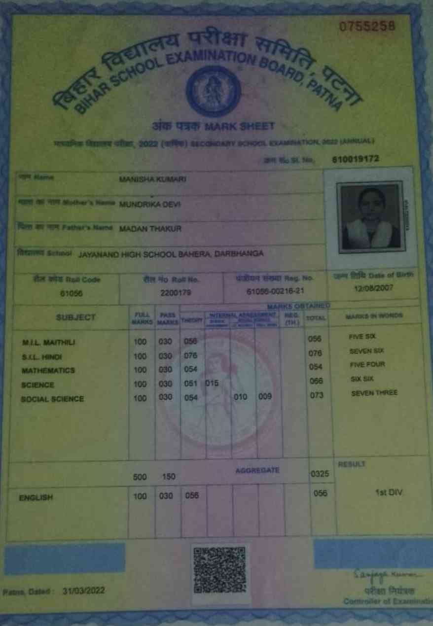 | Exam | Full Marks | Pass Marks | Marks Obtained |