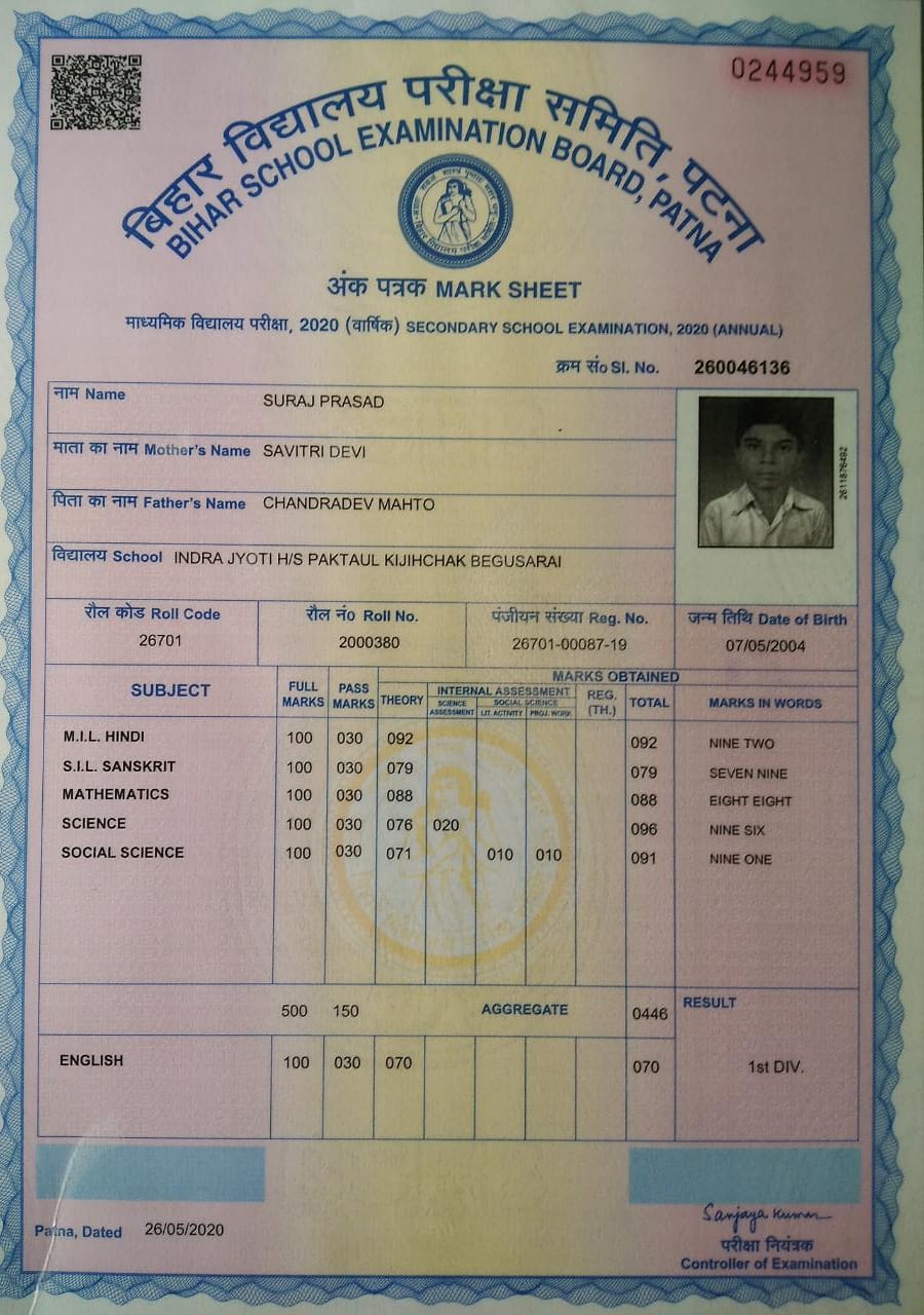 | Exam | Full Marks | Pass Marks | Marks Obtained |