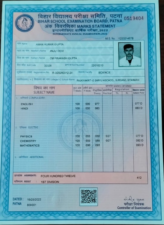 | Exam | Full Marks | Pass Marks | Marks Obtained |