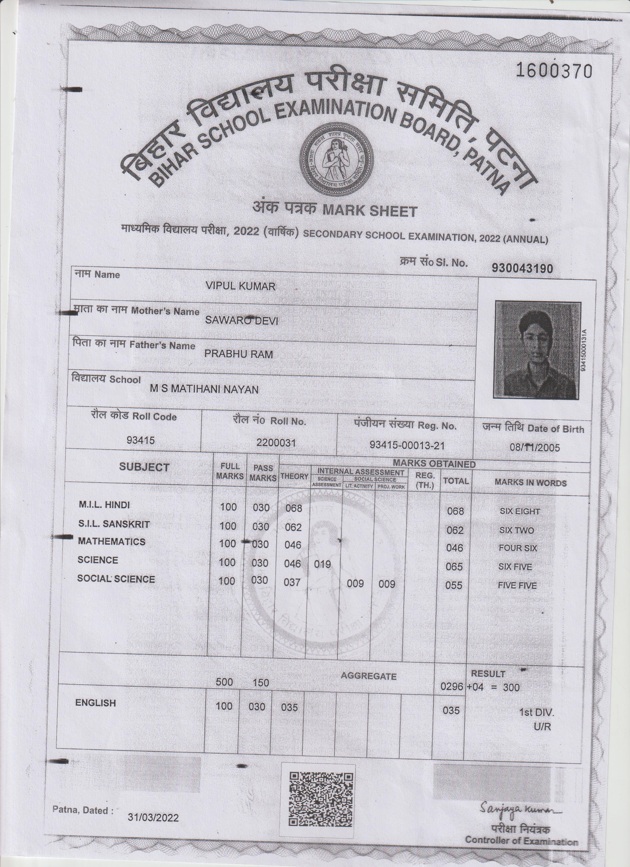 | : | Matric | |