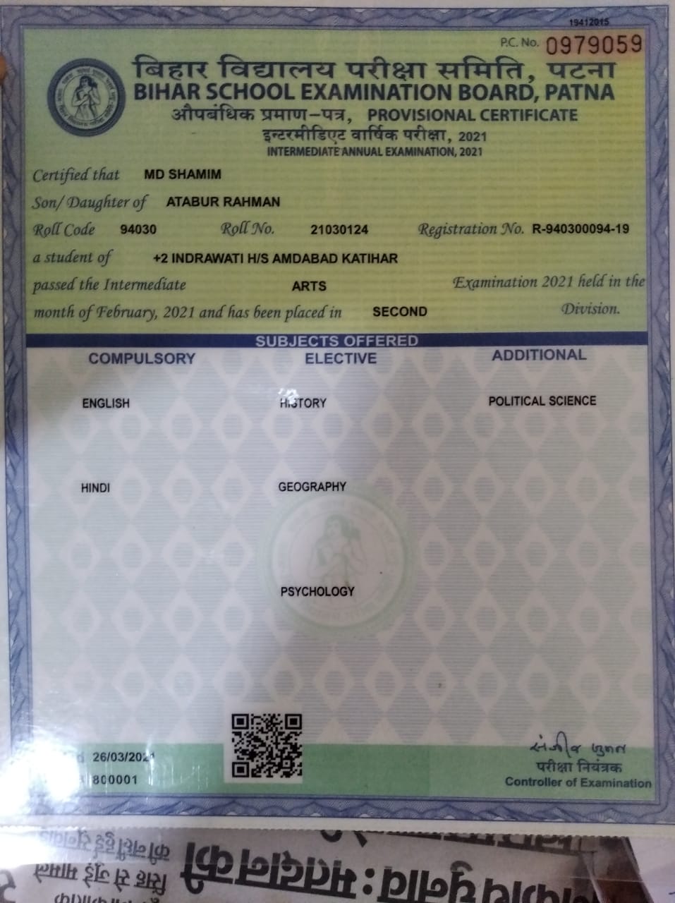 | Exam | Full Marks | Pass Marks | Marks Obtained |